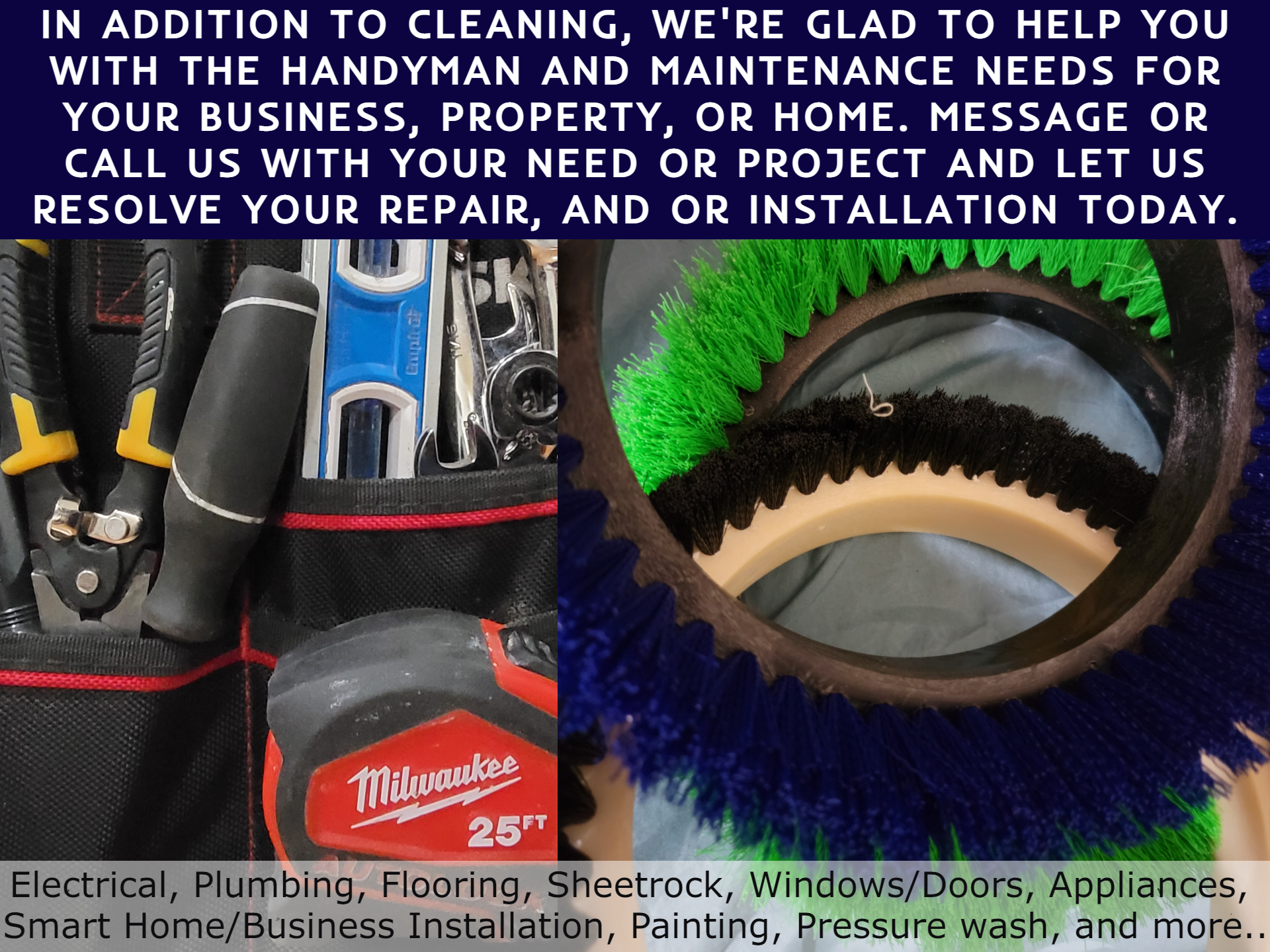 Includes: Elaborate Intensive House Cleaning, Carpet Cleaning, Pet Stain Extraction, Maid Services, Move/Move Out cleaning and Post Renovation cleaning, Junk Removal, Pressure Washing, Single and Multi-Unit Property Maintenance and Handyman Services, and much much more! Click Below for Our Residential, House Cleaning and Maintenance Services and Prices!